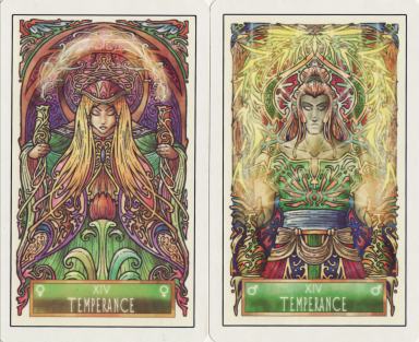 12 April 2010 Last week I received the latest tarots by the Philippine artist Lynyrd Narciso. Among these is a delightful art nouveau style deck, the Tarot Bagong Sining. This is in the form of a double set of majors, one of which is masculine and the other feminine. This deck has been limited to only 45 signed copies which will ensure its value for future collectors. It is beautifully drawn and subtly coloured. In the hands of a lesser artist the colouring could have been gaudy and overwhelmed the underlying drawings but Narciso is a master of subtlety and the two facets of his artwork harmoniously work together. ![]()
