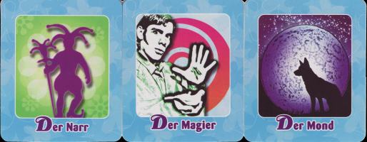 16 January 2009 I recently obtained a rather obscure tarot produced in Germany. This is the Wendy Tarot, and is intended for children. The cards are small and almost square in shape. I am not sure of the exact origins of this deck, but it is produced by the Egmont Ehapa Verlag, and is possibly a deck given away as a gift with a magazine produced by this company. The artwork is not especially skilled or original, using photocollage and a computer graphics program to colour and modify the images. Some of the images seem familiar to me, though I cannot recall in which deck they could have appeared.
