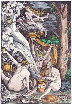 EMB37. Woodcut of witches by Hans Baldung Grien, Strassburg, 1514.