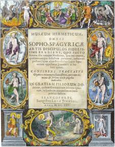A181. Engraved tile page from Musaeum hermeticum, 1625. |