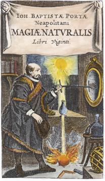 A191.Engraved frontispiece from Giambattista della Porta, Magiae naturalis libri vigenti, Leiden 1644. |