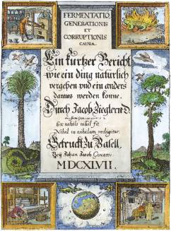 A198.Engraved title page from J Ziegler Fermentatio, Generationis et Corruptionis causa, Basel, 1647 . |
