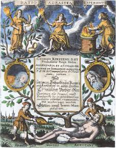 A162.Titlepage engraving from Schweighardt Speculum sophicum Rhodostauroticum, 1618. |