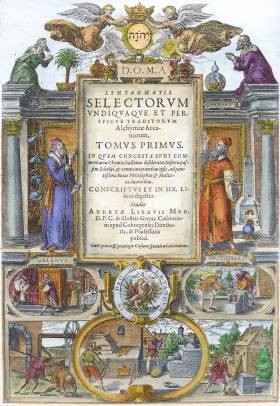 A214.Engraved title page from Libavius Syntagmatis selectorum... Frankfurt 1613 (reused from Alchymia... 1605.) |