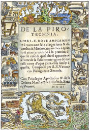 A253. Woodcut title page from Biringuccio De la Pirotechnia, 1540. |