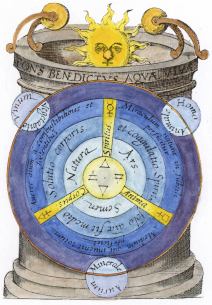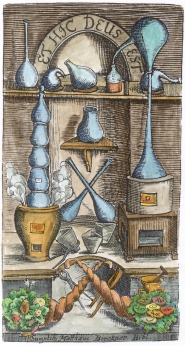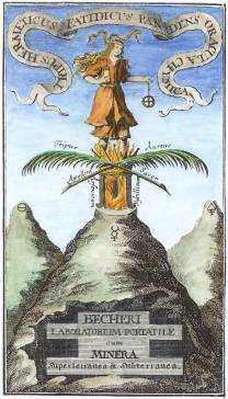 A186.Frontispiece engraving from J.J . Becher, Tripus hermeticus fatidicus, 1689. |
