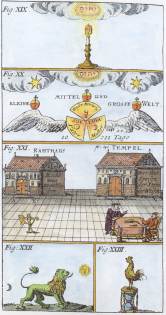 A222.Engraving on titlepage of Hiebner von Schneebergk Mysterium Sigillorum, Erfurt, 1696. |