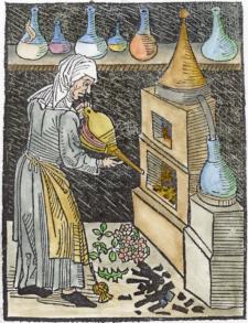 A260.Woodcut of distillation from Michael Puff von Schrick, Augsburg, 1478. |
