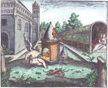 A290. Alchemical cupid from Johann Theodor de Bry Proscenium vitæ humanæ sive Emblematum Secularium, Frankfurt, 1627. |
