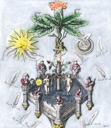 A063. Section of Ripley Scroll from engraving in David Beuther, Universal und particularia, Hamburg, 1718. |
