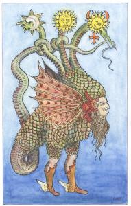 A068. Woodcut of triple-headed dragon from Giovanni Battista Nazari Il metamorfosi metallico, Brescia, 1564. |