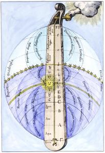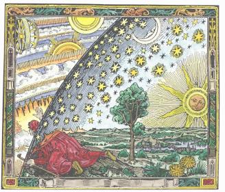 A071. Peering through the cosmic sphere - illustration from 'L'atmosphere: meteorologie populaire',Paris 1888, by Camille Flammarion.