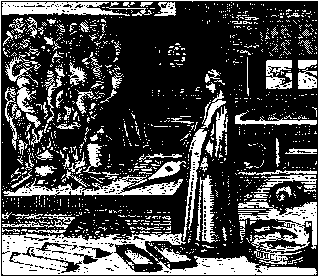 By Coction is understood the Maturation and Dispersion of the more Crude parts, which is performed by Vulcan in the Vessells of Philosophye. For it is not to be supposed that it is common boyling which is the method of operation; it agrees with that only as to its end or intent. For as a woman Matures Fish in waters- that is, by resolving all superfluous moisture from them into Waters and Air, softens, boyles and seethes them- so the philosopher handles his subject in proper water which is stronger than the Sharpest Vinegar by Macerating, Liquifying, Solving, Coagulating and Mixing it in the Vessell of Hermes, the joints of which as it is requisite are most strictly closed, least the water exhale and that which is in the Vessell be burnt. This is that Vessell above the Vessell, and the Philosophers' Pott- the Balneum Laconicum or Vaporous Bath- in which the old man sweats.