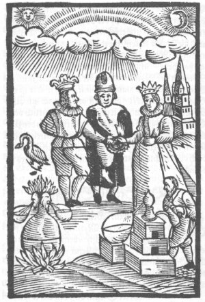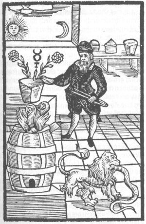Die Zwölf Schlüssel des Basilius ValentinusTranscribed by Johann Plattner from Aus Fr. Basilii Valentini Benedictiner Ordens Chymische Schriften.... Hamburg / In Verlegung Johann Naumans und Georg Wolff. Anno M.DC.LXXVII.Back to alchemy texts and articles in German. Alle Krämer-Wahr auß den Bergen gilt ihr Geld / wann aber Verfälschung beybracht wird / ist die Wahr untüchtig worden / denn sie ist verfälschet / und ist nicht mehr / wie zuvor gewesen / in ihrer operation. Und wie der Arzt den innerlichen Leib außseget und säubert durch Mittel seiner Artzeney / und alle Unreinigkeit von ihm außtreibet / Also müssen auch unsere Cörper geseget und purgiret werden / von aller Unreinigkeit / damit in unser Geburt die Vollkomenheit würcken kan / Unsere Meister erfordern einen reinen unbefleckten Leib / so mit keinem Mackel noch einiger frembder Vermischung bekleidet ist / Denn frembder Zusatz ist unserer Metallen Aussatz. ![]() Und wisse / daß dieses nur allein der rechte Weg ist hierzu tüchtig / unsere Cörper zu reinigen / dann der Leo säubert sich durch das Geblüte des Wolffs / und des Geblüts Tinctur freuet sich wunderbarlich mit der Tinctur des Löwens / denn ihr beyder Geblüt sind in der Gesipschafft naher Verwandniß / Und wann sich der Löwe ersättiget hat / ist sein Geist stärcker worden / denn zuvor / und seine Augen geben einen stoltzen Glantz von sich / wie die helle Sonne / sein inners Wesen vermag denn viel zu thun / und ist nutzlich zu allem dem / darzu man ihn erfordert / und so er in seine Bereitschafft gebracht wird / so dancken ihm die Menschen-Kinder / mit schweren hinfallenden Kranckheiten und mehren Seuchen beladen / die zehen aussätzigen Männer lauffen ihm nach / und begehren zu trincken / von dem Blut seiner Seelen / und alle / so Gebrechen haben / erfreuen sich höchlich seines Geistes / Denn wer von diesem güldenen Brunnen trincket / empfindet eine gantze Verneuerung der Natur / Hinnehmung des Bösens / Stärcke des Geblüts / Krafft des Hertzens und eine vollkommene Gesundheit der Glieder / sie seyen innen beschlossen / oder ausser dem Leibe empfindlich / Denn es eröffnet alle Nervos und Poros, damit das böse kan außgetrieben werden / und das gute dero statt ruhiglich bewohnen kan. Mein Freund sol aber ein fleissiges Auffsehen haben / daß der Brunn des Lebens lauter und klar befunden werde / Denn keine frembde Wasser müssen sich in unserm Brunnen vermischen / auff daß keine Mißgeburt entstehe / und auß einem gesunden heilsamen Fisch eine Schlange herfür krieche / da auch durch Mittelwege / eine Schärffe darzu gefüget / dadurch unser Leib gebrochen worden / so verschaff / daß alle Corrosiv abluirt werde / Denn keine Schärffe ist dienlich den innerlichen Kranckheiten zu wehren / denn das Scharffe dringet durch mit Zerstörung / und würde mehr Kranckkeiten gebehren / Sondern unser Brunnen muß ohne Gifft seyn / wiewol Gifft mit Gifft muß vertrieben werden. Wann ein Baum keine gesunde wolschmeckende Frucht bringet / so wird er abgeschnitten auff seinem Stamm / und wird ein andere Art besserer Früchten darauff geimpffet / Dann vereinigt sich das Reiß mit dem Stamme / daß auß dem Stamme und seiner Wurtzel mit sampt dem Reiß alles ein guter Baum wird / und nach Begehren eines Impffers eine gute gesunde wolschmeckende Frucht herfür giebet. Sechs Stätte durchwandert der König am himmlischen Firmament / aber in der siebenden behält er seinen Sitz / Denn der königliche Saal daselbsten ist mit guldenen Stücken behänget. Verstehest du jetzo / was ich rede / so hastu mit dem Schlüssel das erste Schloß eröffnet / und den Rigel des Anlauffs zurück getrieben / kanst du aber noch kein Liecht darinnen ergründen / so wird dich auch kein gläsern Gesichte befördern / noch natürliche Augen vermögen zu helffen / das letzte zu finden / das du im Anfang gemangelt hast / Dann ich wil nicht ferner reden von diesem Schlüssel / wie mich Lucius Papirius gelehret hat. Der Ander Schlüssel. Wenn die Sonne ihre Strahlen von sich gibt / und außbreitet unter den Wolcken / so spricht der gemeine Mann / die Sonne zeucht Wasser und es wird regnen / und so das öffter geschicht / gibt es ein fruchtbar Jahr. Einen köstlichen herzlichen Pallast in die Höhe zu bauen / müssen viel macherley Art Meister und Arbeiter ihre Hand anlegen / und gebrauchen / ehe der Pallast gezieret / und vollkommen geheissen wird / Denn was steinern seyn sol / kan nicht höltzern gemacht seyn. ![]() Eine Jungfrau / so man vermählen wil / die wird zuvor mit Mannigfaltigkeit der Kleidung zum besten und schönsten gezieret / damit sie ihrem Bräutigamb Gefallen bringet / und das Band der Liebe durch ihr hertzlich Anschauen / desto tieffer und brünstiger einwurtzeln möge / Und so die Braut denn ihrem Ehegatten nach fleischlichem Herkommen beygelegt wird / wird die mannigfaltige Kleidung aller bey und abgelegt / und die Braut behält keines mehr / denn dieses / so ihr der Schöpffer in der Geburt gegeben hat. Also wenn unser Bräutegam Apllo mit seiner Braut Diana durch Heyraht sol vermählet werden / müssen ihnen zuvor auch macherley Kleidung bereitet / und ihre Häupter und gantzer Leib mit Wasser wol gewaschen werden / welche Wasser du durch vielfältige Manier der Destillirung zu bereiten erlernen must / Denn sie sind sehr ungleich / etliche hoch / etliche gering / darnach man derer bedürfftig ist / gleich wie ich von den vielfältigen Geträncken gesagt habe / und wisse / wenn die Feuchtigkeit der Erden auffsteiget / und der Nebel auffgezogen wird / gibt es sich in der Höhe zusammen / und fällt durch seine Schwere nieder / dadurch dem Erdreich seine verlohrne Feuchtigkeit wieder gegeben wird / das erquicket dann die Erden / und gibt ihr Nahrung und Fügung / daß Laub und Graß auß ihr wachsen können darum müssen etliche Bereitung deiner Wasser im distilliren offt wiederholet werden / daß du den Abzug seiner Erden viemals wieder giebest / und aber darvon treib