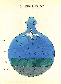 The Crowning of NatureText and figures 18-27.Back to Crowning of Nature main page . Go to next section ![]() The Separation of the Elements Therefore the separation of the elements in this art is nothing else than to separate or segregate heterogeneous (which are accidents from homogeneous (which are of the Essence of the Stone), that at length the mixture of the elements might be most pure and perfect. But the conjunction of the elements is to keep up homogeneous things, that is, those that are of the nature of the Radical Moisture. Hence Raymond "have patience in dealbation or whitening, because here lieth much tardity". Thou must know further, my Son, that the separation of the elements with the Philosophers is termed the conversion of them, as if to convert the elements was to make a thin body of a gross one, that is, of the body a spirit, and afterwards of the moist a dry, of water earth, and the elements are converted one into the other. But the Philosophers do prescribe such a manner of converting the body into the spirit. The earth is resolved into water, and water into air, the air into fire, but the spirit is turned into the body. This way the fire is coagulated and it becomes air, but the air is coagulated and becomes water, but the water is coagulated and becomes earth. From whence saith Assidnus "behold elements hath met together in one nature, who when they are so impelled (that is coagulated) become friends, but when they wax thin they become enemies. Therefore convert the elements and thou shalt find what thou seeketh". It behovest thee, therefore, first of all to mortify and exalt the Stone, that is, the body, soul and spirit, seeing that no one gains any thing in this art except he mortifieth, but mortification is by the separation of the elements, by which the effect of every element is shown. Therefore if thou wilt make the elixir, it will be necessary that thou break this Stone into his elements, which is signified by the parts of the year, and then conjoin the elements by fire, Mercury mediating, which is the Philosopher's chiefest secret, and then this Mystery is completed, for all the art is placed in conjoining and loosing. But these separations are done as seest, my Son, Mercury mediating, for it first looseth the body and makes separation which in the meantime are conjoined by Salt and Mercury. But here we must diligently note it is first of all Mercury,in the beginning of the work is called water, then the blackness appearing earth, then being sublimated air, and being made red is called fire. ![]() The Conjunction of the Elements Then being added to the whole composed matter it is called the Spirit. And so the Earth, with Water, Air and Fire, is a body, the Salt is the life, the last watering of the only Mercury, the spirit. It is therefore evident that the Stone consisteth of four elements, to wit, Water, Air, Fire and Earth. For in the Stone there are the Soul, the Body and Spirit, and yet but one Stone, as it is above said, behoving to loose and coagulate him again, then all the operations are contained under the Solution until the Albifaction it is sodden again, and becomes a Stone again when it is coagulated. Afterwards it is loosed again and then the solution is reiterated, until the Stone comes out like wax. ![]() ![]() ![]() ![]() If you have problems understanding these alchemical texts, Adam McLean now provides a study course entitled How to read alchemical texts : a guide for the perplexed. |