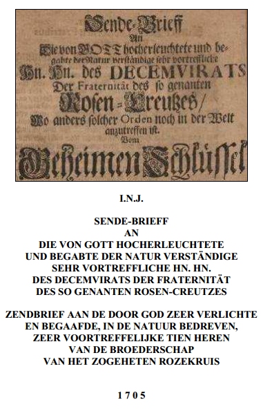 Sende-brieff an die von Gott hocherleuchtete und begabte der Natur verständige sehr vortreffliche Hn. Hn. des Decemvirats der Fraternität des so genanten Rosen-Creutzes.