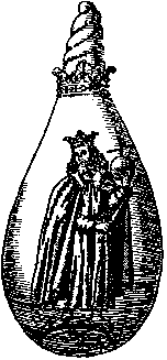 Within a crowned flask with sealed or closed top, a King stands holding an orb in his left and a sceptre in his right hand.