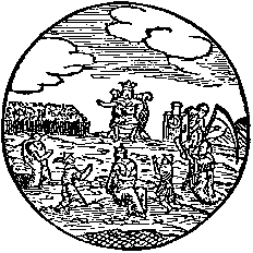 Six of the planetary Gods, Jupiter, Mercury, Luna-Moon, Mars, Saturn, and Venus, sit in an arc in front of the Sun who crowned sits upon a throne. To the right the alchemist works his furnace and within his flask something is beginning to take form. To the left is the cornfield.