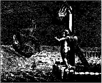 A winged Cupid stands at night under a light on a harbour. He holds up the symbol of ?, and guides a ship into port. The sea is marked Sulphur, and the Ship has Saturn, Sun and Moon on its sails.