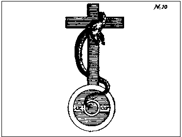 A serpent is crucified on a cross which stands upon a circle labelled 'Azoth'.