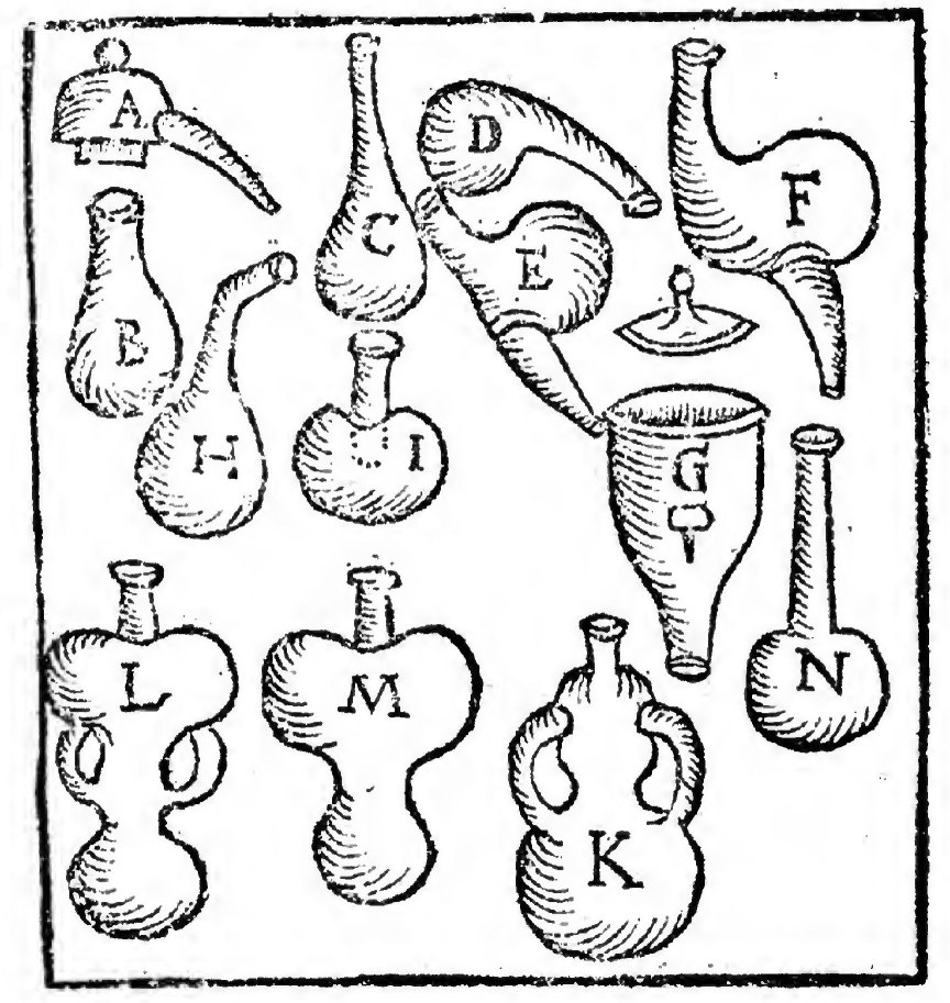 17th Century alchemical equipment Gerard Dorn (1530-1584) Chymisticum artificium naturae, Theoricum et Practicum: cuius Summarium verse pagella clarius indicabit: Liber plane philosophicus, in gratiam omnium verae Philosophiae naturalis studiosorum aeditus per Gerardum Dorn. Franckfurt, 1658. Back to apparatus page