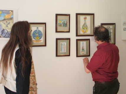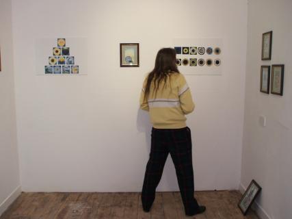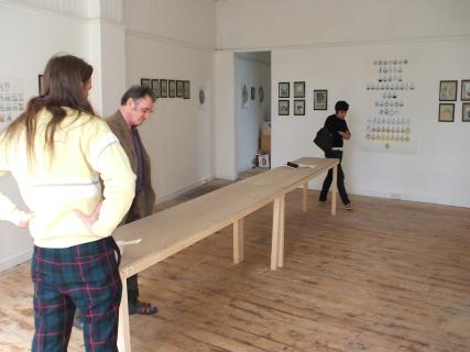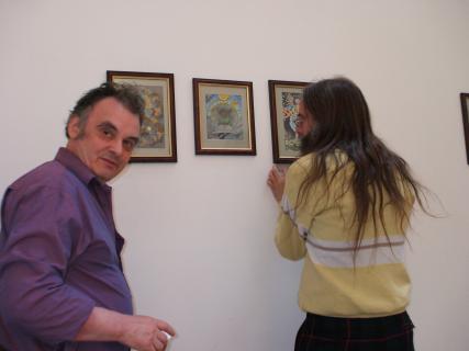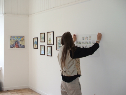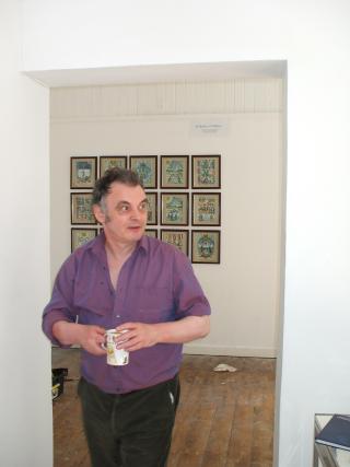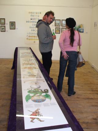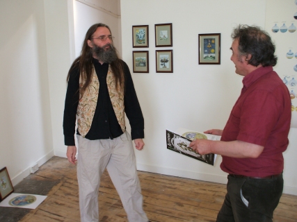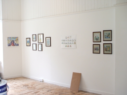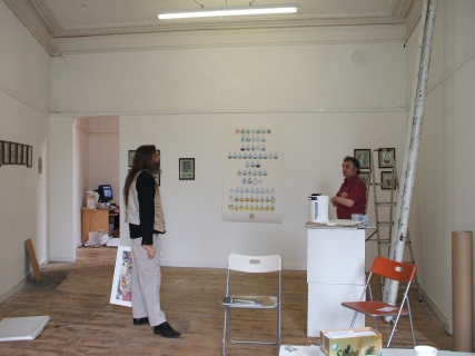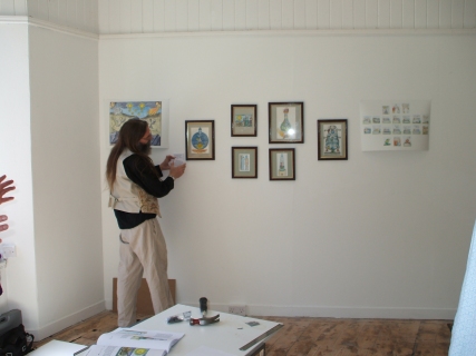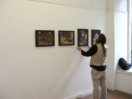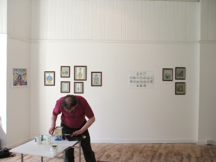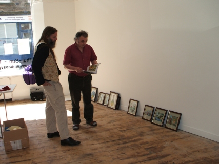 Installing the Alchemy Exhibition at the Embassy Gallery in Edinburgh, 2007 Back to Alchemy and Art page Myself, my partner Franzeska and the curator of the exhibition, Ronnie Heeps travelled to Edinburgh on Tuesday 24th July to begin the installation of the exhibition of my paintings and prints at the Embassy Gallery which will be running throughout August during the Edinburgh Festival. Apart from helping with setting up the exhibition Franzeska kindly agreed to photograph the work in progress, and I will put up the photos here over the next week or so. Fully illustrated book of the exhibition is now available.