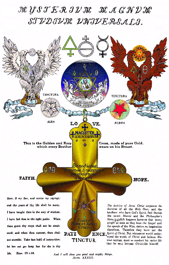 This well known image of the Goden and Rosy Cross was originally found in the 18th century German manuscripts of the Geheime figuren which was printed in 1785 and 1788.
