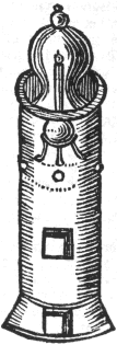 54. p21 Woodcut in text. 92x32mm. Cylindrical furnace with flask on tripod.