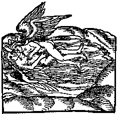 15. f64v Woodcut 13 of Rosarium series. 74x86mm. The Nourishment. A winged hermaphrodite or conjoined King and Queen lies as if dead in a sepulchre filled with water. (Compare with emblem 6).
