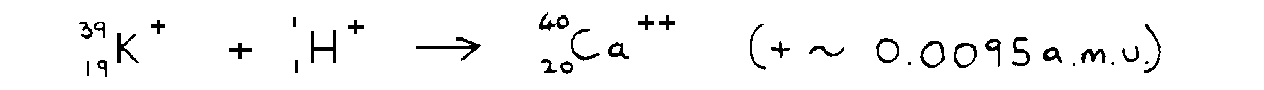 These publications were received with scepticism by some physicists because such transmutations were not explainable within the laws of physics then admitted. However, other scientists were to confirm Kervran's findings. Among these were Prof. Dr. Hisatoki Komaki, chief of the Laboratory of Applied Microbiology at a Japanese University, Prof. Baranger, Head of the Laboratory of Chemical Biology in the Ecole Polytechnique in Paris. J.E. Zundel, at that time Director of a paper company having a chemical analysis laboratory, pointed out that in germinating oats, there was an increase of Calcium of sometimes more that 100% in a medium containing no calcium. Prom where was this Calcium derived ? Kervran suggested from Potassium, because of a decrease of Potassium (K) quantitatively equal to the increase in Calcium (Ca), and he gave the following formula in 1960
