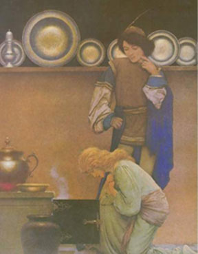 Copper and Venus By Nick Kollerstrom Back to Metal-Planet Affinities index page On average, women have about 20% higher copper serum than men and for iron it is the other way round, with men having a one-third higher iron level than women in their blood. The deep significance of this fact is entirely ignored by modern medicine. Iron and copper levels are sex-linked in exactly the way expected from the gender symbolism of their planets. The level of copper in human blood is critical, being around one part per million by weight, and normally it remains fairly steady around this value. Copper in women's blood serum has a monthly cycle in tune with their menstrual period, peaking a week or so before the period arrives. This is because their serum copper exists chiefly as the protein, 'ceruloplasmin', whose metabolism is closely linked to the female sex hormone oestrogen. The Pill works by emulating conditions of pregnancy where oestrogen is high, and this has a drastic effect upon serum copper levels. During pregnancy, copper serum in the mother climbs up to double its normal level, reaching 1.9 parts per million. Conversely, iron in foetal blood also increases as the time of birth approaches, so a copper-iron polarity develops between mother and child. Insomnia, depression and changeable moods towards the end of pregnancy have been related to the raised copper levels. A woman taking the Pill has blocked off her monthly rhythm of serum copper, and instead retains a permanently high level corresponding to the ninth month of pregnancy. Evidence suggests that copper has a dynamic role in the reproductive process, rather than just being a by-product of the raised oestrogen. In the early 1970s it was discovered that coil contraceptives using copper were much more successful than previous coil designs. The 'copper-7' coil became the most popular design and was marketed world-wide, used chiefly by women who have already had one child. Despite intensive research however, no-one had any idea as to the mechanism whereby copper in the coil helped prevent conception. Copper ions have a biological action on the inside of the uterus, preventing implantation of the fertilised ovum. Its modus operandi is thus quite unconnected with that of the Pill, where overall blood serum levels are raised. The sole connection is that in both situations a striking Venus-quality is shown by copper's behavior. Having compared copper and iron in the blood, lets compare them in other aspects - as their two planets are nearest to us, one within Earths orbit and the other outside it. Pure copper is a metal of reddish-pink hue, and has a warm, beneficial glow which contrasts with the cold glint of steel. With something made out of iron one may feel 'how strong' or 'how useful', whereas with something made out of copper, the first impression is more aesthetic. Whether it is a copper bowl, a trumpet, or a green-domed copper roof, it is the visual appearance rather than the utility of the metal which first strikes one. It is such a soft and pliable metal that it needs to be alloyed with other metals, into brass or bronze, before it can be used for a structural purpose. In an exhibition of mineral ores those of copper first attract the attention, providing a joy to the eye as do those of no other metal. Look at the delicate green-blue hues of malachite or azurite- how different from the massive, solid forms of the iron ores, pyrites or haematite! The pyrite crystals form perfect cubes, expressing Martial power and strength. A contrast to this is the copper ore malachite, often cut and polished for decoration, to disclose its swirling patterns and sea-green hues. The names of the ores of copper point to gentle Venus qualities: azurite, malachite, turquoise, chalcopyrite and peacock ore. A room in which iron or steel predominates has the atmosphere of an office or a factory. It demands a mood of efficiency from us. A room in which copper predominates, in contrast, has a warm, homely atmosphere, in which we can relax. This is a key concept to the English pub. Americans dont understand this, and have drinking-bars where the cold glint of steel is evident, as promotes their violent and restless society. The high resonance of copper makes it suitable for a wide variety of musical instruments-in the strings of a string instrument, in the brass section, in percussive instruments, and so forth. Traditionally astrology associates the arts of music with Venus. No-one has better appreciated the glowing hues of copper than the American artist Maxfield Parrish. His natal chart (25 July 1870) had strong Venus-aspects ( it was conjunct Mars and Moon and in opposition to Saturn). One of his pictures is here shown.