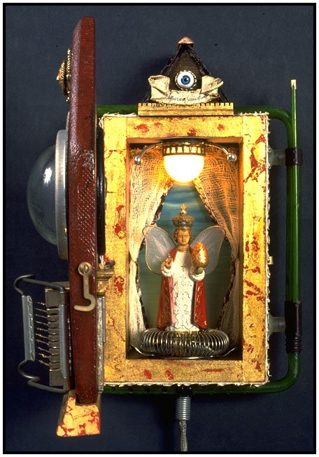 OIL, GOLD LEAF, FOUND/ALTERED OBJECTS, MONARCH BUTTERFLY
