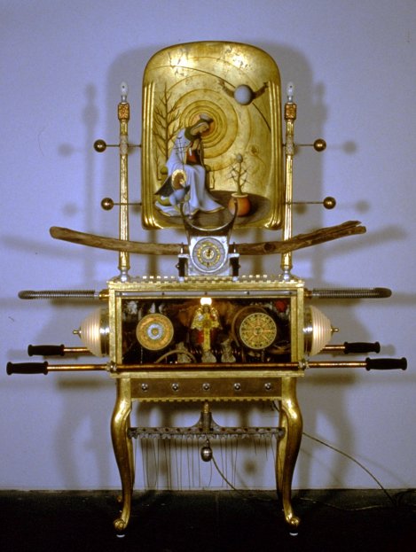 60"x52"x14" OIL, GOLD LEAF, FOUND/ ALTERED OBJECTS IN WOOD/ METAL CONSTRUCTION