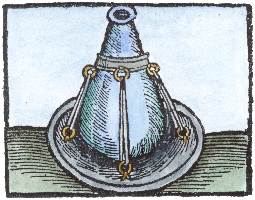 Next let the vessel cool for two hours. Then remove the still head and in its place put a stopper which should be sealed tight. This is then placed on a sand bath but not too hot.