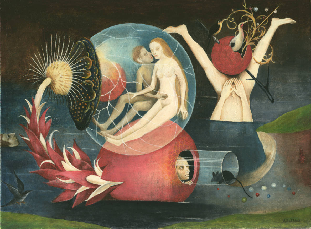 This oil painting is McLean's version of a small section from the middle panel of Hieronymous Bosch's Garden of Earthly Delights.