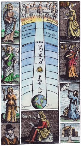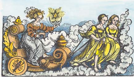 I have decided to spend as much of my time this year working on emblematic imagery. I recently was able to issue an art book of my coloured versions of various alchemical sequences. I was very impressed by the print quality, the fine binding and the delivery service that the company provided, and want to produce more material in this form, so I have a number of projects in preparation. Among the first of these will be one of Astrological and Astronomical woodcuts and engravings. I already have a concsiderable amount of this material prepared but I have been gathering some more obscure and delightful items for this compilation. Opposite is a frontispiece by engraver Richard Gaywood from an unknown work of around 1660, showing the liberal arts and the planetary spheres. I have found many examples of such almost unknown items and by including these I hope to produce a good sourcebook on astrological and astronomical imagery.