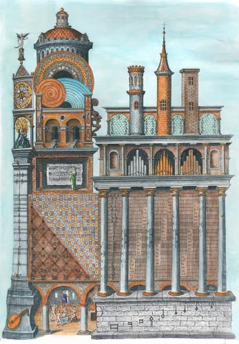 After many years searching I finally managed to find a reasonably high quality scan of the famous Temple of Music engraving from Robert Fludd's volumes on the Macrocosm and Microcosm, and set about colouring it. It did take a few days, as the colouring scheme was difficult. It is easy for people to merely colour various components of an engraving to suit their idiosyncratic feeling at the time, but this usually produces a total mess. One has to think long and hard about how the different parts of the image reflect each other and how colouring helps separate the various structures and parts of an image, and tie together related elements. This engraving has been quite a challenge. You can zoom in to see all the details by clicking on the image.