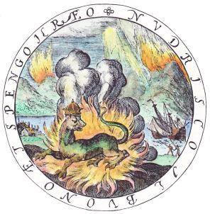 I have spent about twelve hours colouring this large cosmological plate from Robert Fludd's Utriusque Cosmi Historia. I provided an extensive analysis of this in my study course on the Imagery of Robert Fludd but was always unhappy with the quality of the copies I had been able to obtain. Recently I found a high resolution scan of this large engraving that was suitable for colouring. The original plate is a large copperplate engraving spanning two pages and thus scans of photographs of this image often exhibit a problem down the central line. I have also cleaned up the background which had various scratches and pits in the copperplate so now we have a very good copy of the emblem. I will make it available in the book on Cosmological, Astrological and Astronomical emblems in the maximum page size, but I am now happy to supply it as a large A2 print.