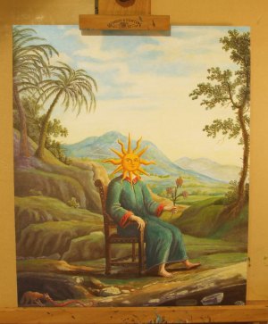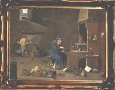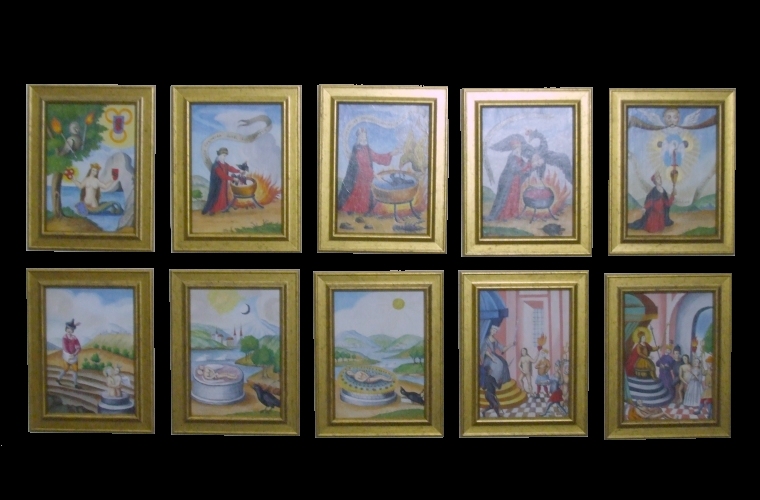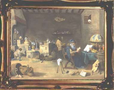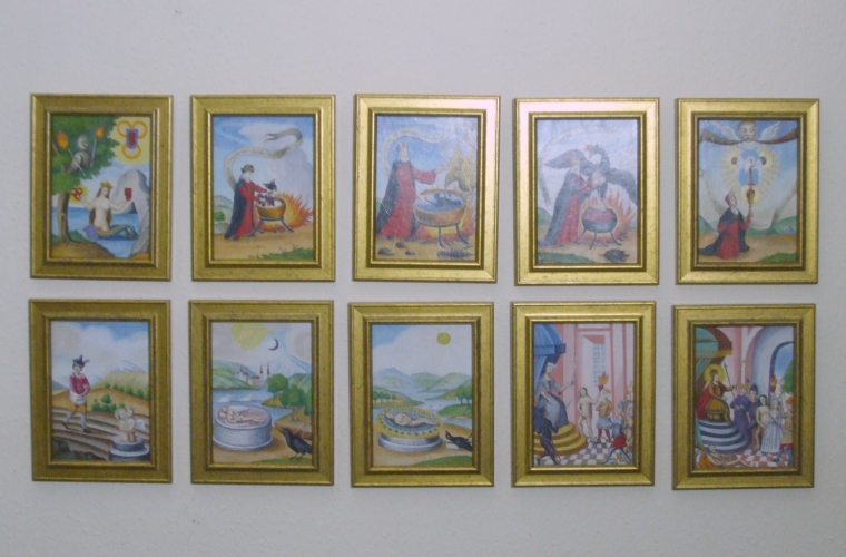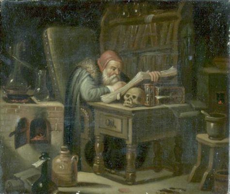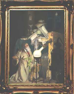 I have been very lucky recently as I have sold four of my 2001 paintings of alchemists to a single collector.
