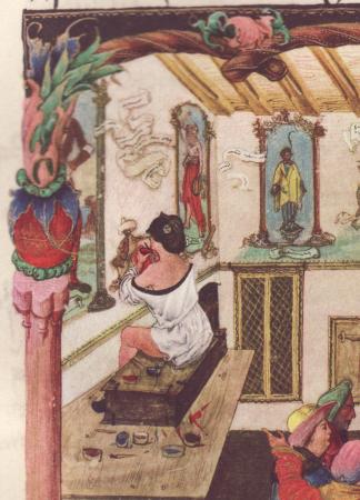 Last evening I noticed the film of Umberto Eco's novel In the Name of the Rose was being broadcast on television. I took a short glance (for a few minutes) at the film, as I have seen it a few times before, and happened upon the scene when the medieval detective and his sidekick (really Holmes and Watson) first entered the labyrinthine library. The novel is set in 1327 and constantly alludes to manuscripts being copied in the scriptorium by monks. This led me to wish to point out that this is a bit of an anachronism. Many people believe that illuminated manuscripts were all made by monks, indeed some of my correspondents think that alchemical manuscripts emerged out of monastic scriptoria. This is a fanciful idea but not really true. During the 12th century there developed craftworkers, scribes, limners, and illuminators who quickly became much more skilled at their work than monks, so much so that by the beginning of the 13th century they were usually employed to undertake the copying of manuscripts, and by 1250 monks were no longer devoting time to this task, as it was so much more convenient for the religious house to pay these craftsmen for the work. This was happening long before alchemical manuscripts had appeared in any numbers.