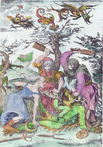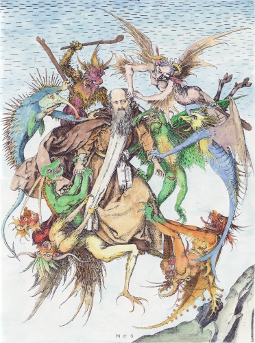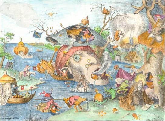 Sadly I have not been able to find time to undertake much painting recently. The good news in the last week is that I now have a commission to make a facsimile of a section from Bosch's Garden of Earthly Delights. This might take a few months as I have so many other commitments. I have managed to find an hour here and there over the last months, to make some coloured versions of the woodcuts in the Prognostications of Paracelsus.