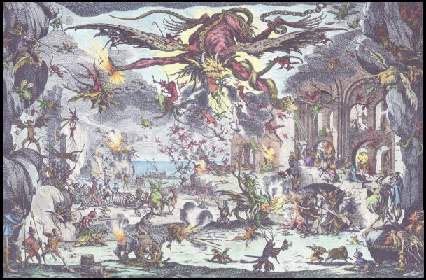 A few months ago I found a source for high quality images of a series of rather delightful images of Hell created by Philipp Sadeler, a rather obscure artist engraver working in the early decades of the 17th century. I find his images, which appeared as illustrations in the Jesuit Jeremias Dexel's book on the horrors of Hell issued in 1631, have a rather playful sense of humour. I decided to colour these quite stark engravings. These will be made into a book for my upcoming series of art books which I will publish through Blurb in a few weeks time.