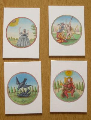 Over the last three weeks I have used what scraps of free time I could manage to make coloured versions of the 51 woodcuts from the Card game of Logic, created by Thomas Murner in 1509. These are now completed and I will now move on to making these up into book form as the fifth item in my Art Book Series. This is an amazing work, fusing medieval logic, a Renaissance memory system, emblems and a card game. As always, I have adopted a subtle, naturalistic colouring scheme.