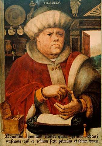I recently found this interesting portrait by a late 16th century German painter Hermann Tom Ring (1520-1597). He did a number of portraits of people of his time and also a series on ancient sybils and sages. The one that caught my attention was Hermes Trismegistus ca 1570 (oil on wood panel). On the right is another from this series, of the astrologer Albumasar. I will take a look at a book on this painter in the University Library.