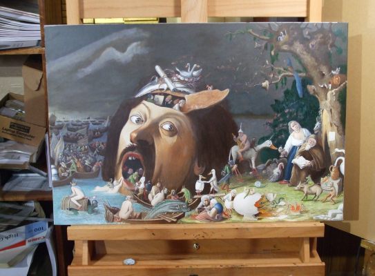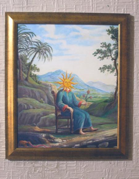 At least one painting will never leave the area, as it was painted on the walls of circular room in a private house. I was privileged to have been able to see this piece, the Riddle Mural which is so technically amazing, even including anamorphic figures. Now what artist has been able to do that since Holbein in 1533?