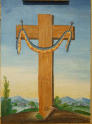 This is a copy of an illustration of the well known crucified snake from a 18th century manuscript of the Flamel hieroglyphics - the Molinier manuscript in the Bibliotheque Nationale. I am planning to create copies of all the images from this manuscript.
