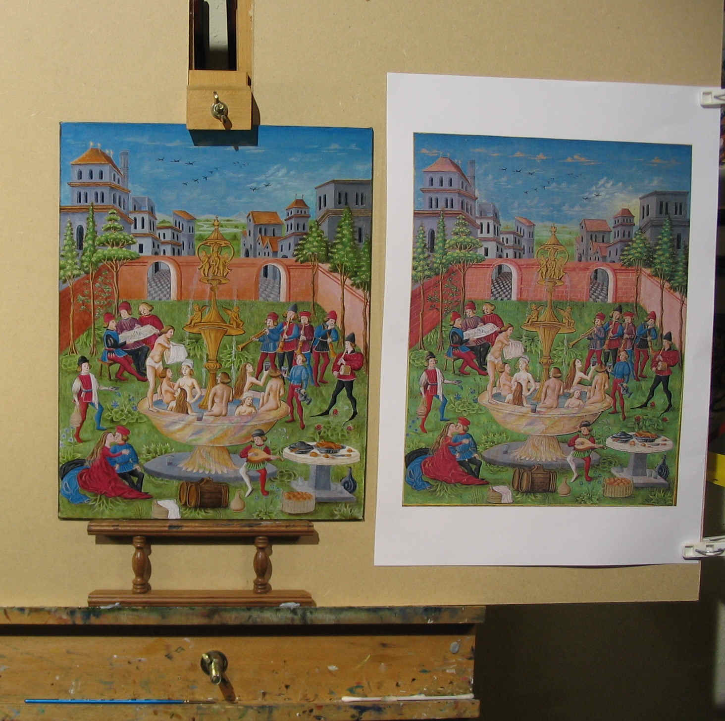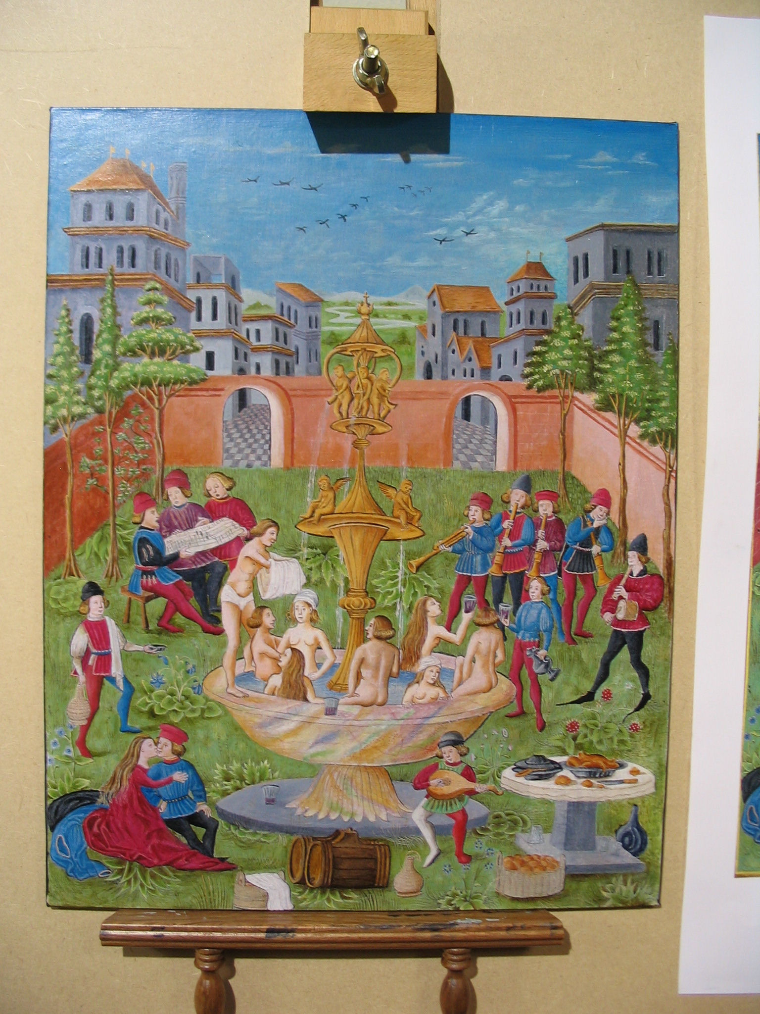 Work in progress on the easel - The fountain in the garden of Venus