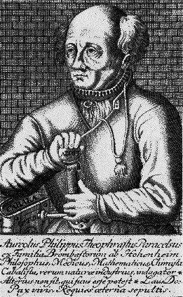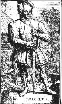 Most of the illustrations in books, however, are of the conventional image of Paracelsus with his hand on the pommel of his sword which has the 'azoth' hidden inside.