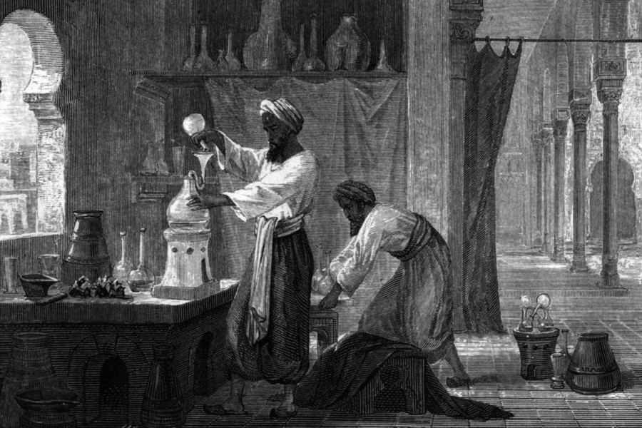 Rhases in his laboratory 19th century engraving showing Rhases in his laboratory Back to laboratory engravings. ![]()