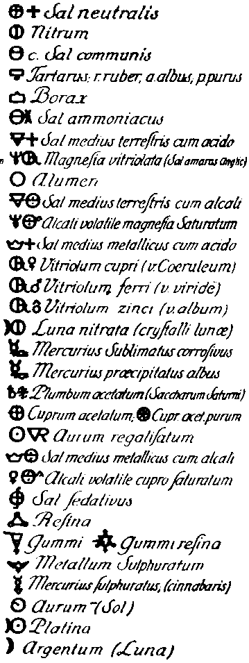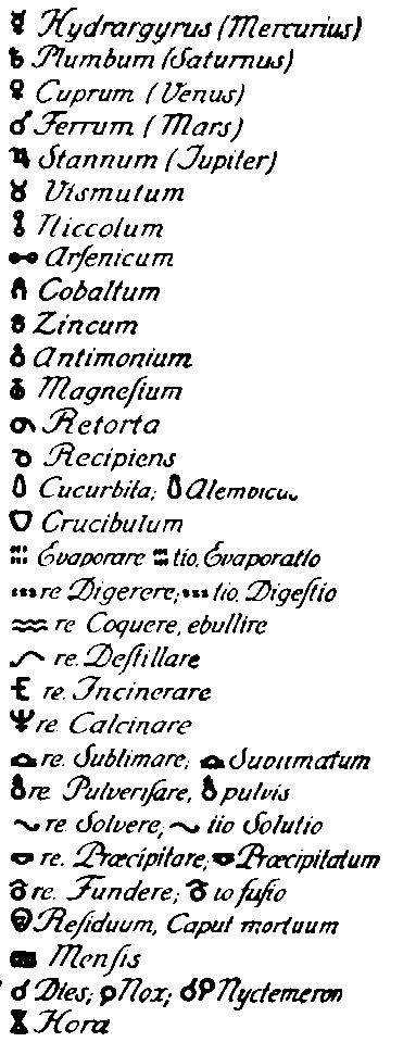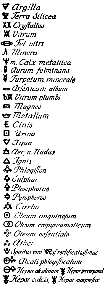 Alchemical and chemical symbols used by Scheele (18th Cent)